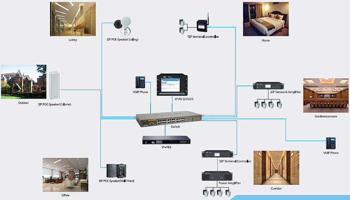 SIP公共廣播的作用主要是播放背景音樂,用VoIP話機(jī)尋呼找人,同時(shí)你也可以用VoIP話機(jī)進(jìn)行雙向?qū)χv。其可以廣泛應(yīng)用于學(xué)校、商場(chǎng)、醫(yī)院、小區(qū)等等。