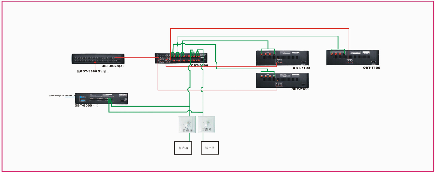 7.緊急廣播:公共廣播系統與消防廣播系統進行聯動,共用功放和揚聲器等設備,以最大限度的節約資源,系統通過報警發生器可自動接收消防信號,當有火警時廣播自動切入緊急信號,系統將自動將錄制好的報警音頻信號強制輸出至大廈內,第一時間內發現險情并疏散人群,搶救財務,避免人員傷亡和財產損失,保障大廈內一切安全。